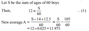 - The average age of 60 boys in a class was calculated as 12 years. It was later realised that the actual age of one of the boys in the class was 12.5 years but it was calculated as 14 years. What is the actual average age of the boys in the class? (SBI Clerk 2014)