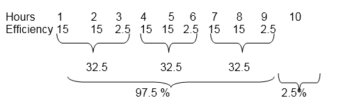 In 9 hours 97.5 % tank will be filled. On the 10th hour 2.5 % will be filled by inlet pipes with 15% efficiency