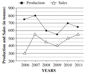 average production of Company B (in tonnes) from the year 2006 to the year 2011