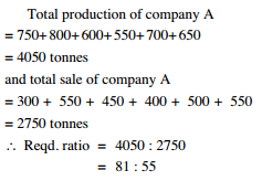 and the respective ratio of the sales (in tonnes) of Company A to the sales (in