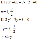 II. 2 y2 – 7y + 3 = 0