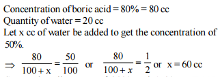 must be added to 100 cc of 80% solution of boric acid to reduce it to a 50%