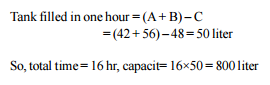 and 48 liter/hr respectively. If tap A and B are filling the tank and C is emptying
