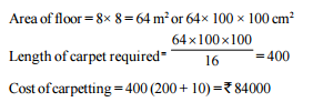 floor of the room. If the cost of carpet is Rs.200/m. and labour charge is Rs.