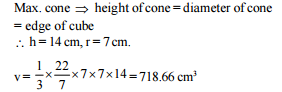 volume of the cone that can be cut from a cube of edge 14 cm.?