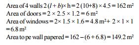 8 m broad and 4.5 m high. These are two doors with dimensions 2.5 m × 1.2 m, two