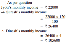 Jyoti’s monthly income is 22,000. What is Dinesh’s monthly income ?