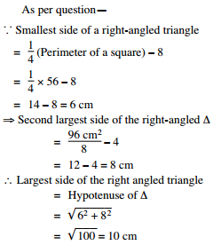 right angled triangle is 8 cm less than the side of a square of perimeter 56