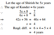 Shirish and Kunder are in the ratio of 5 : 6 respectively. After 8 years the ratio