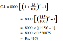compound interest accrued on an amount of Rs. 8000 at the rate of 15 p.c.p.a.