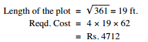 cost of building a fence around a square plot with area equal to 361 sq. ft. if