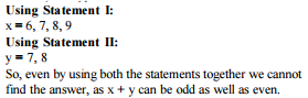 Directions (Q. 6-10): Each question below is followed by two statements I and II. You are to determine whether the data given in the statement is sufficient to answer the question. You should use the data and your knowledge of Mathematics to choose between the possible answers. Give answer—