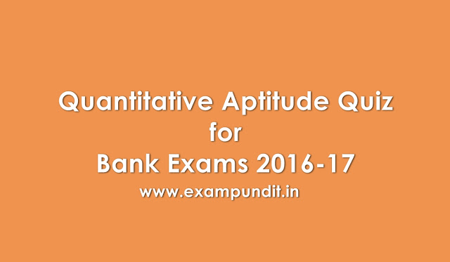 Hello and welcome to exampundit . Here is a set of Quantitative Aptitude Quiz for Upcoming Bank Exams in 2016-17.