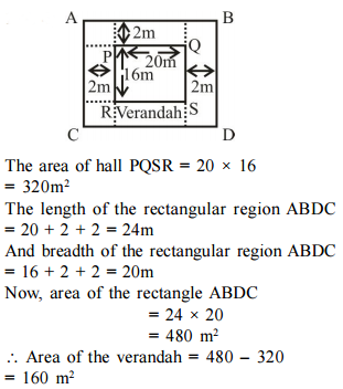 wide rectangular hall is surrounded by a 2-metre wide verandah. Find the area of