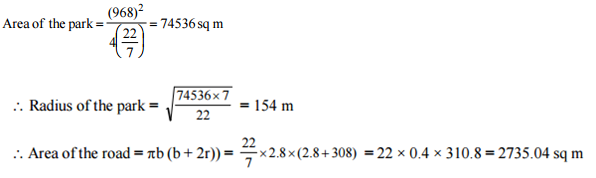 of a circular park is 968m. The park is surrounded on the outside by a road 2.8