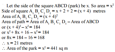 surrounded on the outside by a path 2m wide. If the area of the path is 184 sq