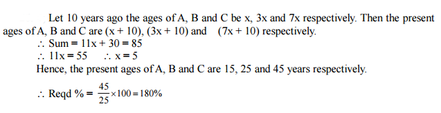 ages of A, B and C at present is 85 years. 10 years ago the ratio of their ages