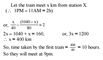 and the other train starts from Y at 1pm and moves towards X at a speed of 80