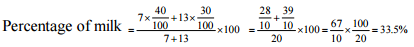 40% milk and Mixture B contains 30%. A container is filled with seven parts of