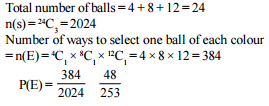 Red, 8 Black and 12 White balls. Three balls are drawn randomly. What is the