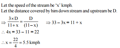 11 kmh–1 in still water. If he takes thrice as much to row up as to