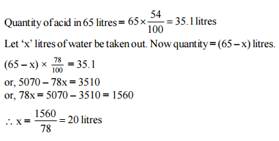 water should be taken out to concentrate 65 litres of 54% acidic liquid to 78%