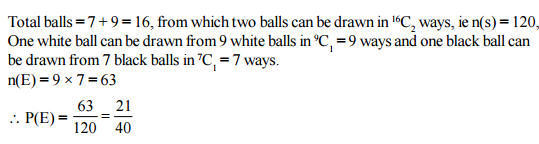 9 white and 7 black balls. Two draws of one ball each are made without replacement. What is the probability that