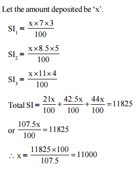 next 5 years and 11% pa for the period beyond 8 years. If the person gets Rs.11825 as simple interest in 12