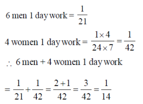 a piece of work in 21 days. 7 women can complete the same work in 24 days. In