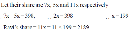 to be divided among Harish, Akarsh and Ravi in the ratio of 7 : 5 : 11 respectively.