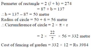 circular garden is 6 metres more than the breadth of rectangle whose perimeter