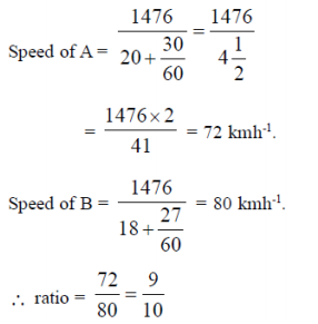 distance of 1476 km in 20 hrs 30 minutes and train 'B' covers the same distance
