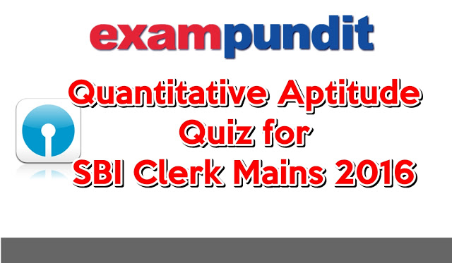 Hello and welcome to exampundit .Here is a set of Quantitative Aptitude Quiz for the upcoming SBI Clerk(Junior Associates) Mains 2016.
