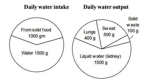 9. What per cent of “Daily water output” is water expired from lungs?