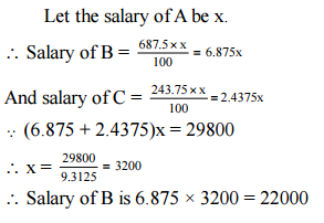 1. The salary of B is 687.5% of the salary of A, and the salary of C is 243.75% of the salary of A. The sum of the salaries of A and C is 50% of the salary of B. If the total salary of B and C is 29800 what is the salary of B?