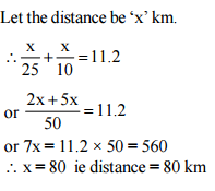 10. A person drives a certain distance on a car at the rate of 25 kmh–1 and returns to its starting point on a bicycle at the rate of 10 kmh–1. The whole journey took 11 hours and 12 minutes. Find the distance travelled by him on car.