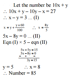 4. The difference between a two-digit number and the number obtained by interchanging the digits is 27. If the digit at ten’s place is 60% more than the digit at unit’s place, what is the original number?