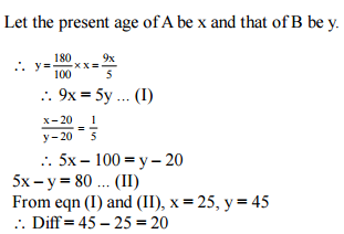 5. The present age of B is 180% of the present age of A. Twenty years ago the ratio of the age of A to that of B was 1 : 5. What is the difference between the present ages of A and B?