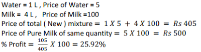 Q10. Raman mixes 25% water to his milk and then he sells the