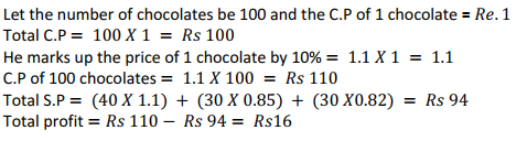 Q8. Jeevan marks up the prices of chocolates by 10% and he