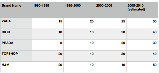 Sales of ZARA in 2005 = x X 1.2 X 1.25 = 1.5x