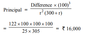 1. The difference between the compound interest and simple interest at 5% p.a for 3 years is ₹122. Find the principal.
