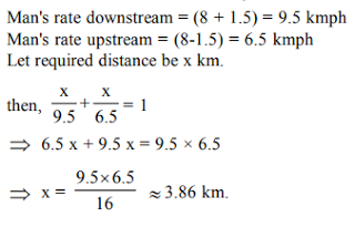 10. A man can row at 8 kmph in still water. When the river is running at 1.5 kmph, it takes him 1 hour to row to a certain place and return to starting place. How far is that place?