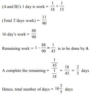 2. A alone can complete a piece of work in 18 days while B alone can complete the same work in 15 days. If they work alternate day with A beginning the work, in how many days will the work be completed?