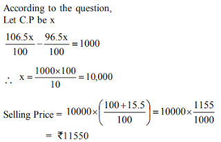 3. A dealer sold a watch at a loss of 3.5%. Had he sold it for ₹1000 more, he would have gained 6.5%. For what value should he sell it in order to gain 15.5%?