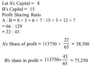 4. A and B enter into a partnership with the capitals in the ratio of 8 : 15. After 3 months, A withdrew ¼ th of his capital and B withdrew 1/5th of his capital. The gain at the end of 10 months was ₹113750. Find the B’s share of profit.