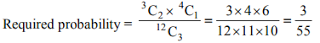 6. In a box there are 4 red, 5 yellow and 3 green balls. If three balls are drawn at random, what is the probability that 2 are green and 1 is red?