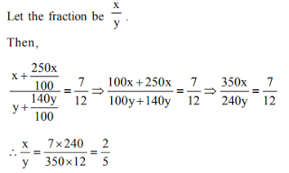 8. If the numerator of a fraction is increased by 250% and denominator of fraction is increased by 140%, the resultant fraction is 7/12. What is original fraction?