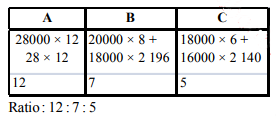 of ₹ 28000. After 2 months, B joins with ₹ 20000 and after another two months C