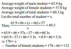 weight of male students is 65.9 kg and the average weight of female students is